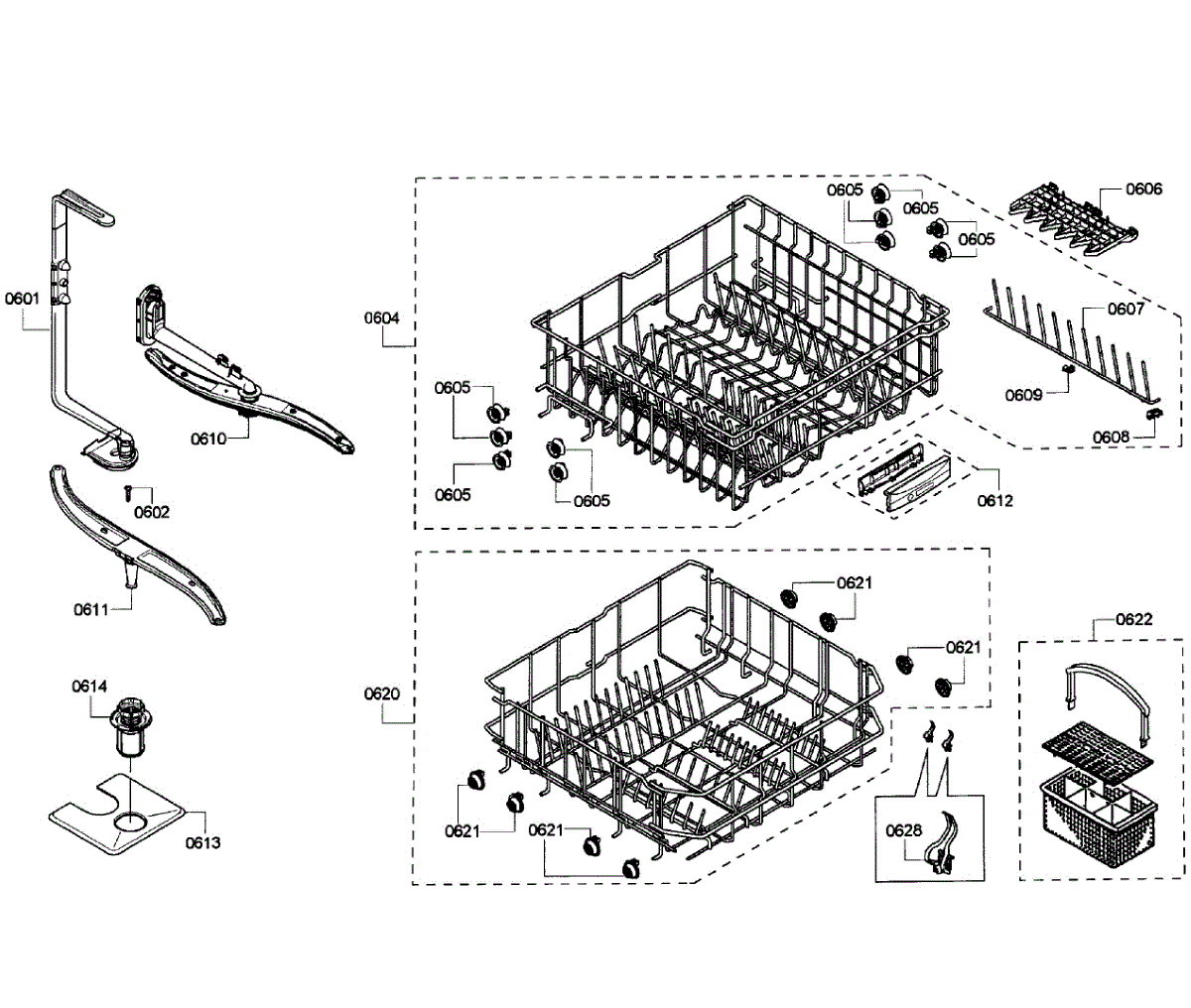 Replace your broken, cracked, or missing dishwasher silverware basket. Holds utensils securely in the lower rack during wash cycles. Includes handle.