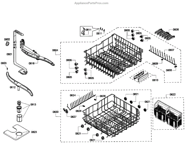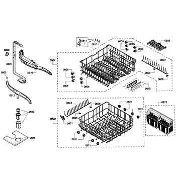 The Upper Dishrack Assembly is an OEM replacement part for Bosch dishwashers. Causes of a bad assembly include cracked or broken rack modules from years of abusive slamming during loading. Mineral buildup may also lead to jammed or stuck tines no longer gliding freely between positions. Symptoms of a bad Upper Dishrack include: