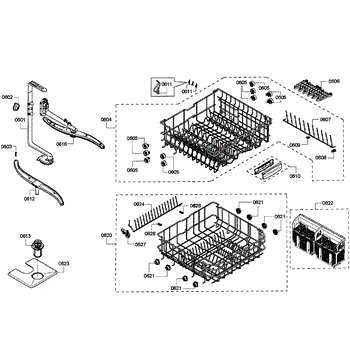 The Insert Dishwasher is an OEM part for Bosch dishwashers. It is a metal basket insert that mounts inside the lower rack of the dishwasher. This insert divides the lower rack into separate sections, allowing for more organization and better placement of dishes, cutlery, and other small items.
