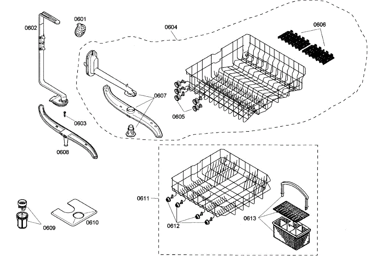 Lower dishrack assembly for dishwashers. Slides in and out for easy loading. Replace when cracked, rusted, or prongs are broken or missing.