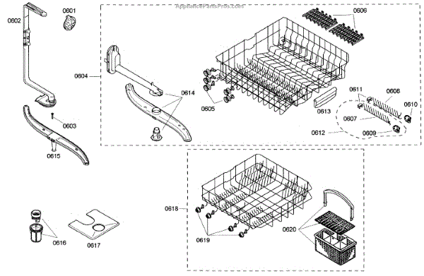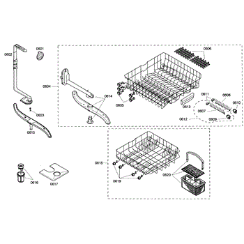 The Silverware Basket Assembly is an OEM part for Bosch dishwashers. This basket is located in the lower rack and is used to hold utensils securely during the wash cycle.