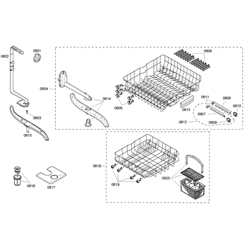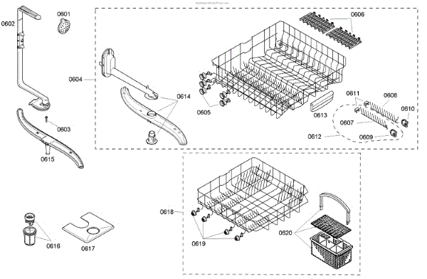The Silverware Basket Assembly is an OEM part for Bosch dishwashers. This basket is located in the lower rack and is used to hold utensils securely during the wash cycle.