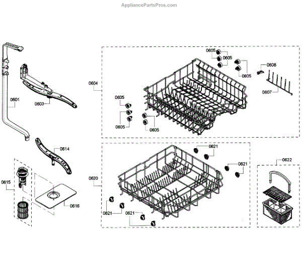 Causes of a bad assembly include cracked or broken rack modules from years of abusive slamming during loading. Mineral buildup may also lead to jammed or stuck tines no longer gliding freely between positions.