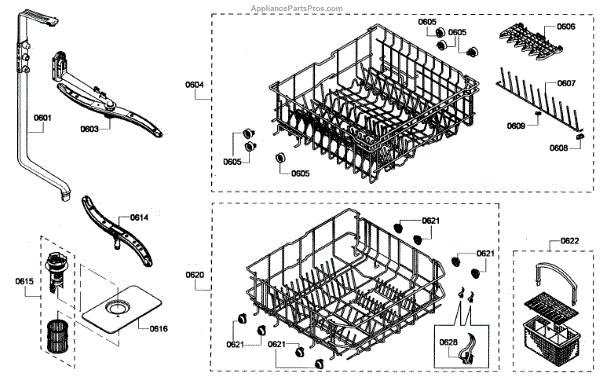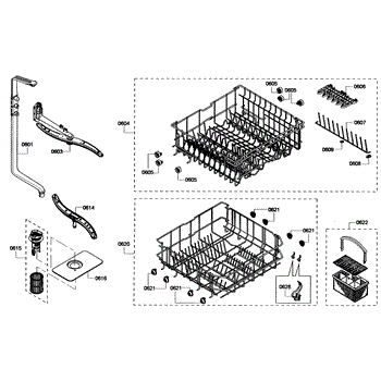 The Upper Dishrack Assembly is an OEM replacement part for Bosch dishwashers. Causes of a bad assembly include cracked or broken rack modules from years of abusive slamming during loading. Mineral buildup may also lead to jammed or stuck tines no longer gliding freely between positions. Symptoms of a bad Upper Dishrack include: