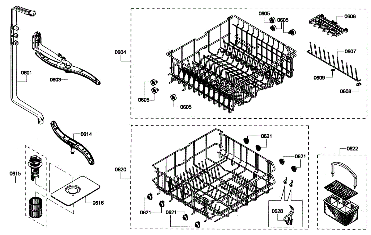 Captures debris before it enters the pump system. Replace when clogged, calcified, or damaged to prevent E22 errors and ensure clean dishes. Verify fit.
