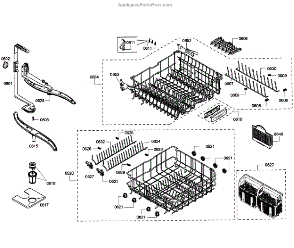 Causes of a bad assembly include cracked or broken rack modules from years of abusive slamming during loading. Mineral buildup may also lead to jammed or stuck tines no longer gliding freely between positions.