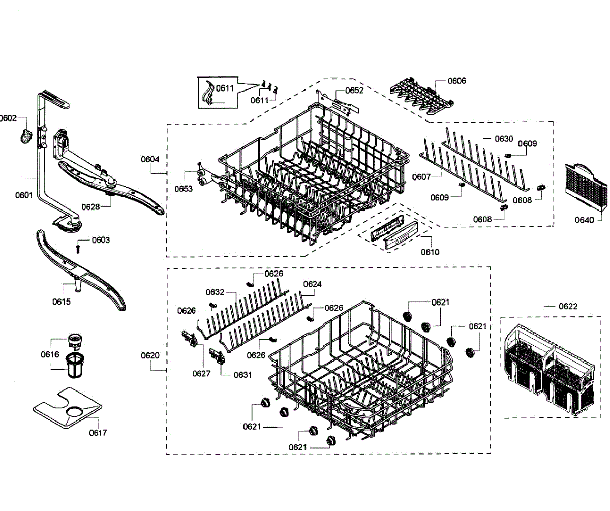 Parts for Bosch SHE55C05UC/65: Baskets Parts