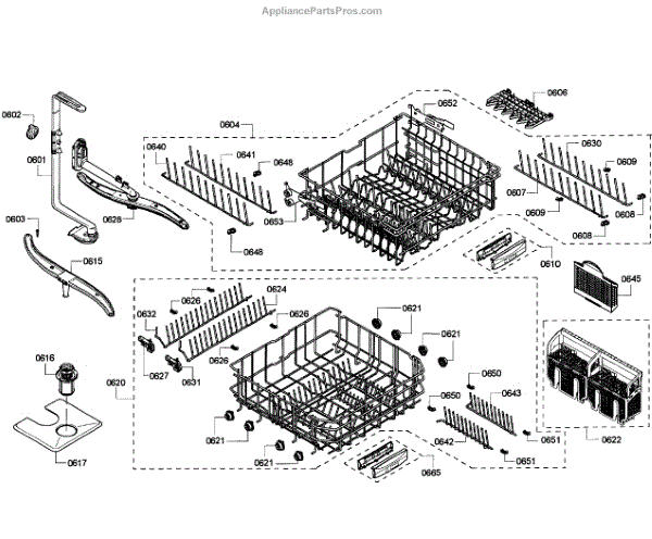 The Upper Dishrack Assembly is an OEM replacement part for Bosch dishwashers. Causes of a bad assembly include cracked or broken rack modules from years of abusive slamming during loading. Mineral buildup may also lead to jammed or stuck tines no longer gliding freely between positions. Symptoms of a bad Upper Dishrack include: