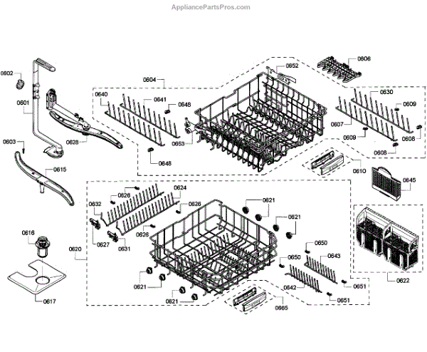 The Upper Dishrack Assembly is an OEM replacement part for Bosch dishwashers. Causes of a bad assembly include cracked or broken rack modules from years of abusive slamming during loading. Mineral buildup may also lead to jammed or stuck tines no longer gliding freely between positions. Symptoms of a bad Upper Dishrack include: