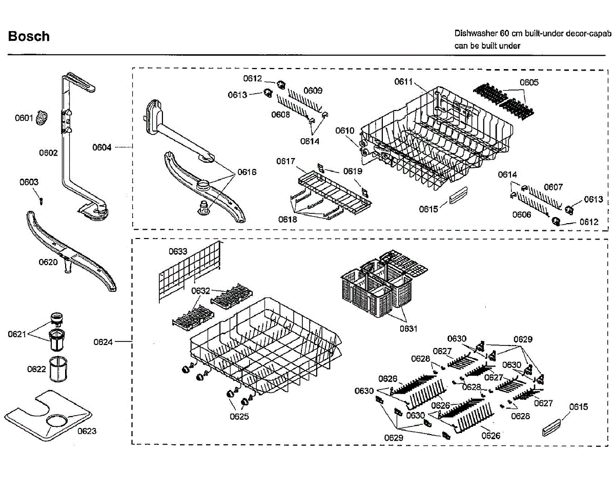 Parts for Bosch SHE66C02UC/38: Baskets Parts