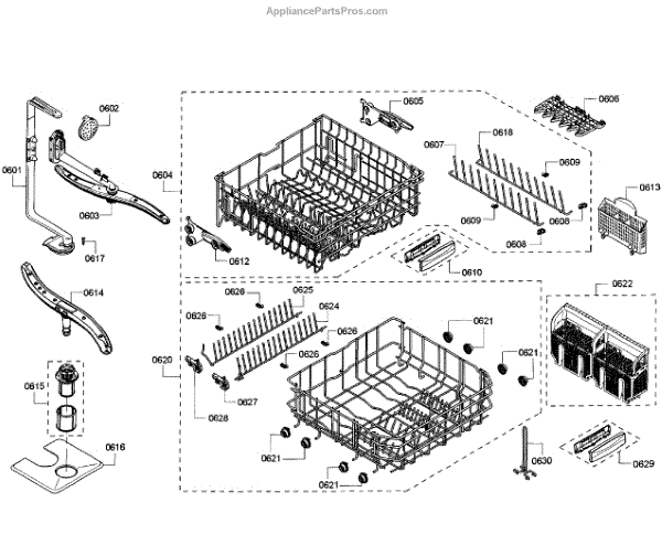 Replacement rack insert for dishwashers. Secures dishes and utensils in place during wash cycles. Needed when original is cracked, broken, or missing.
