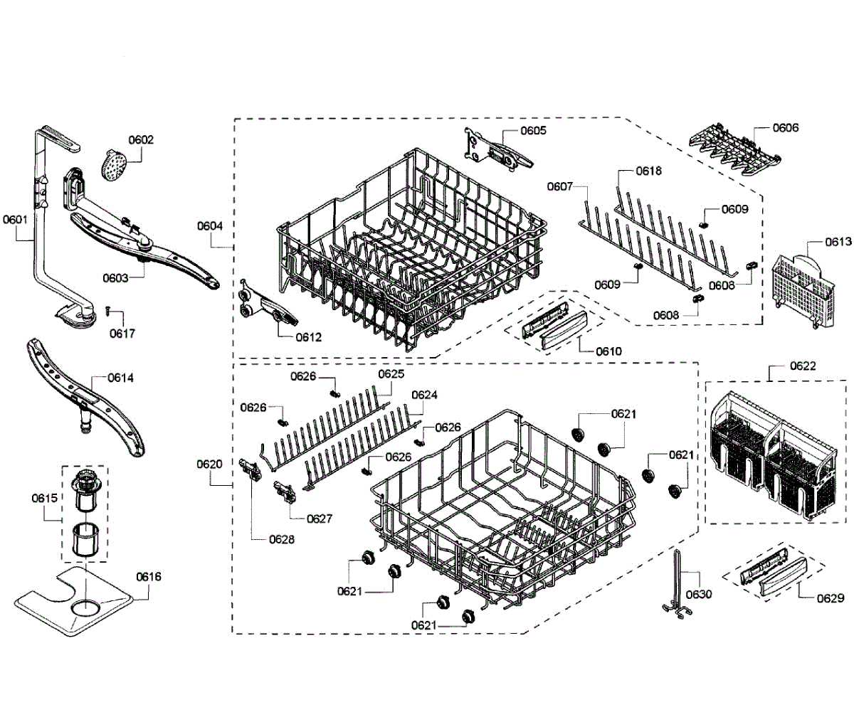 Parts for Bosch SHE68R52UC/69: Baskets Parts