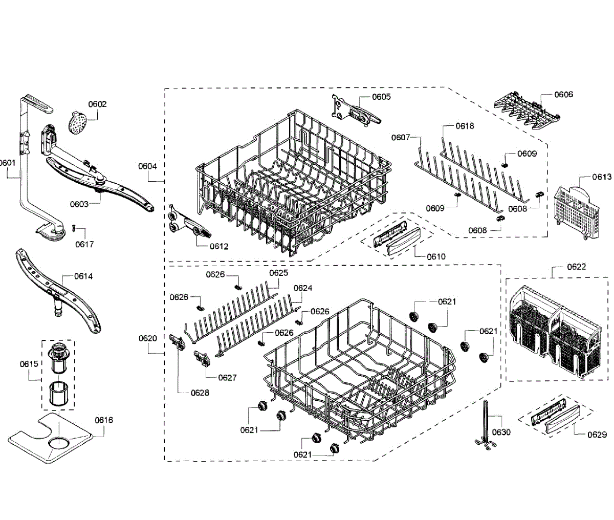 Replacement rack insert for dishwashers. Secures dishes and utensils in place during wash cycles. Needed when original is cracked, broken, or missing.