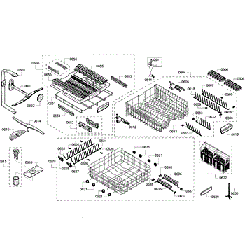 Rack insert for dishwashers. Provides spacing for utensils and smaller dishes. Replace if cracked, warped, or broken from repeated loading cycles.