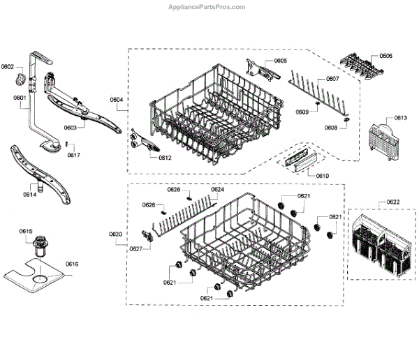 Causes of a bad assembly include cracked or broken rack modules from years of abusive slamming during loading. Mineral buildup may also lead to jammed or stuck tines no longer gliding freely between positions.