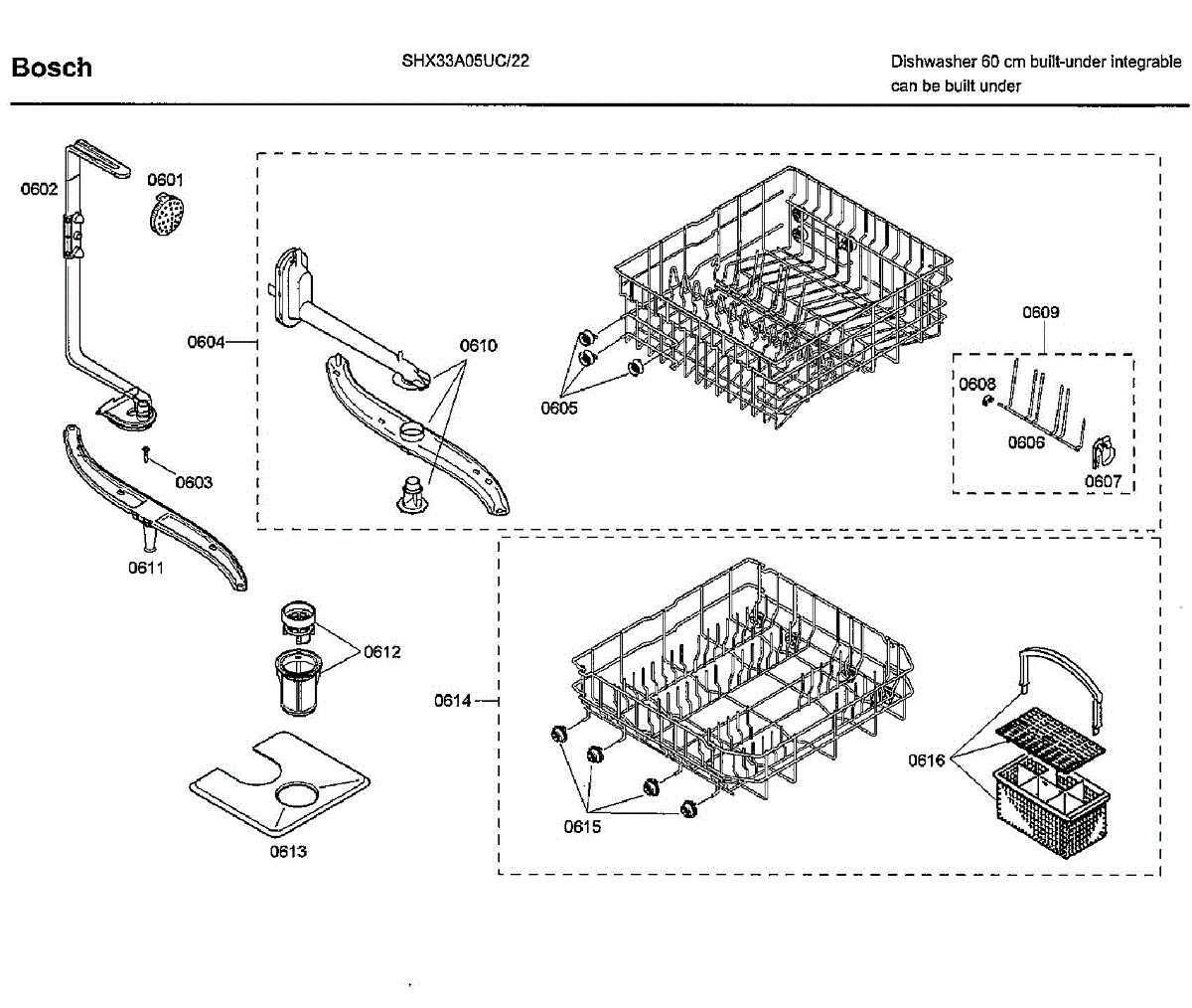 Parts for Bosch SHX33A05UC/22: Baskets Parts