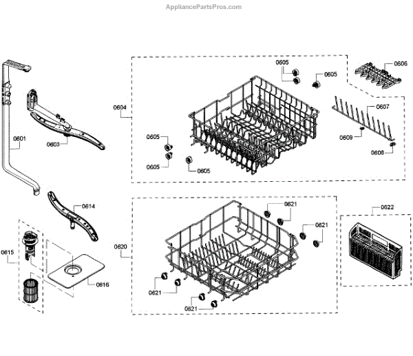 Causes of a bad assembly include cracked or broken rack modules from years of abusive slamming during loading. Mineral buildup may also lead to jammed or stuck tines no longer gliding freely between positions.