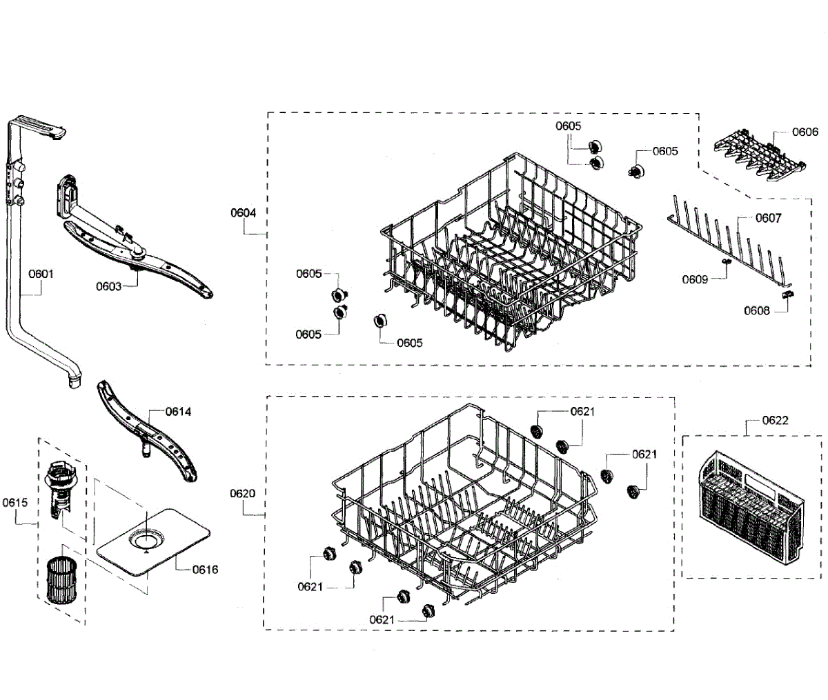 Captures debris before it enters the pump system. Replace when clogged, calcified, or damaged to prevent E22 errors and ensure clean dishes. Verify fit.