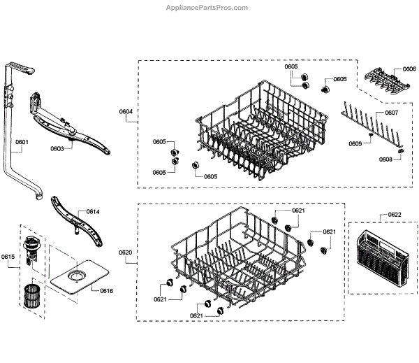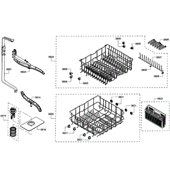 The Upper Dishrack Assembly is an OEM replacement part for Bosch dishwashers. Causes of a bad assembly include cracked or broken rack modules from years of abusive slamming during loading. Mineral buildup may also lead to jammed or stuck tines no longer gliding freely between positions. Symptoms of a bad Upper Dishrack include: