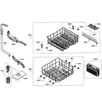 The Upper Dishrack Assembly is an OEM replacement part for Bosch dishwashers. Causes of a bad assembly include cracked or broken rack modules from years of abusive slamming during loading. Mineral buildup may also lead to jammed or stuck tines no longer gliding freely between positions. Symptoms of a bad Upper Dishrack include: