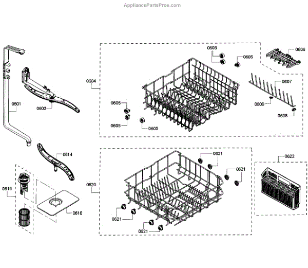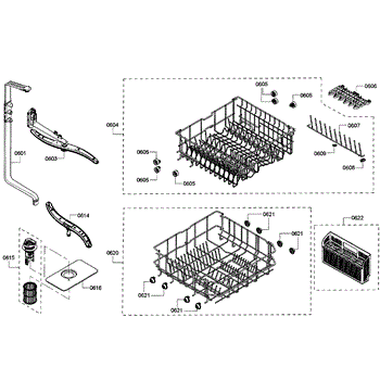 The Upper Dishrack Assembly is an OEM replacement part for Bosch dishwashers. Causes of a bad assembly include cracked or broken rack modules from years of abusive slamming during loading. Mineral buildup may also lead to jammed or stuck tines no longer gliding freely between positions. Symptoms of a bad Upper Dishrack include: