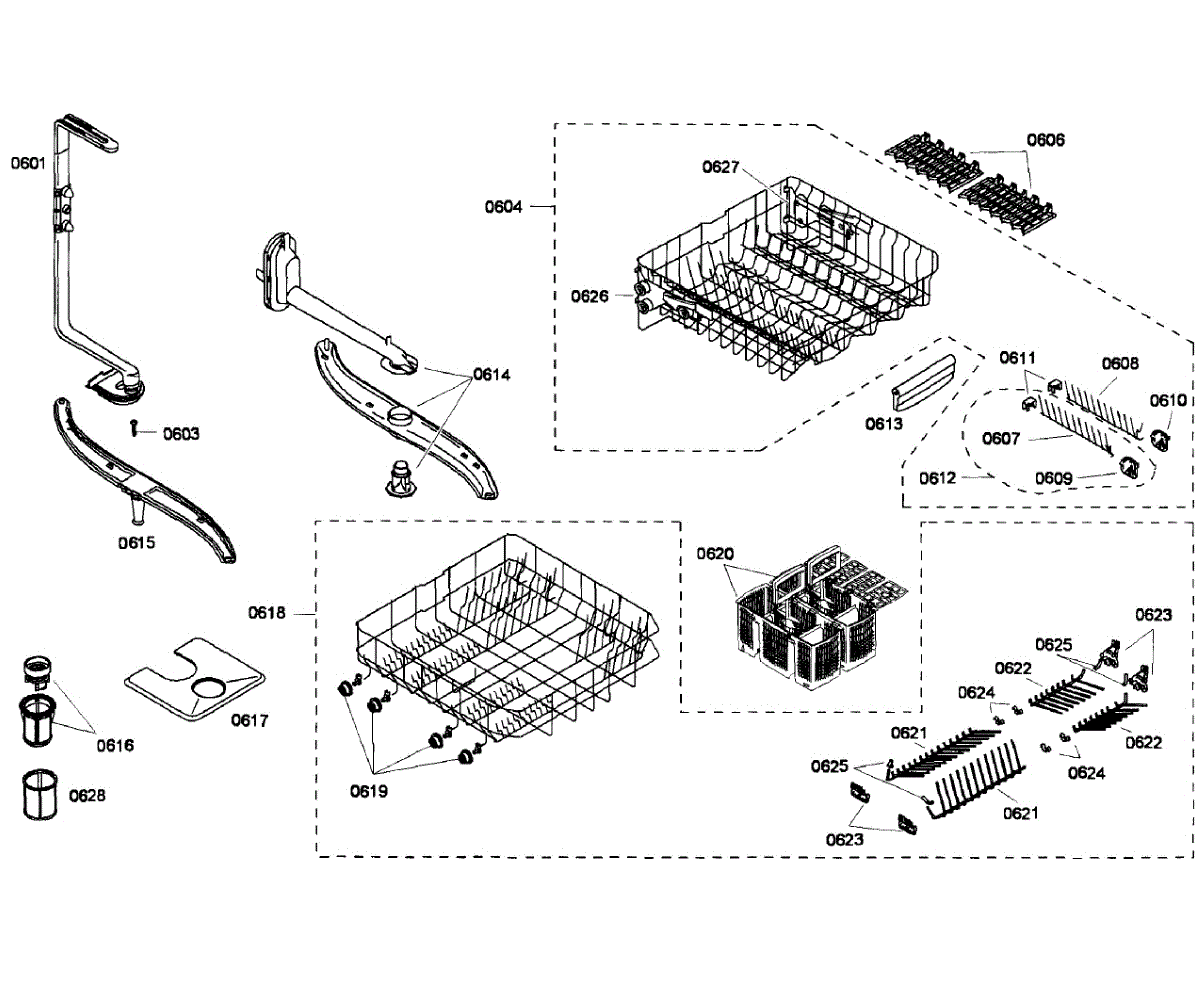 Parts for Bosch SHX55M02UC/53: Baskets Parts