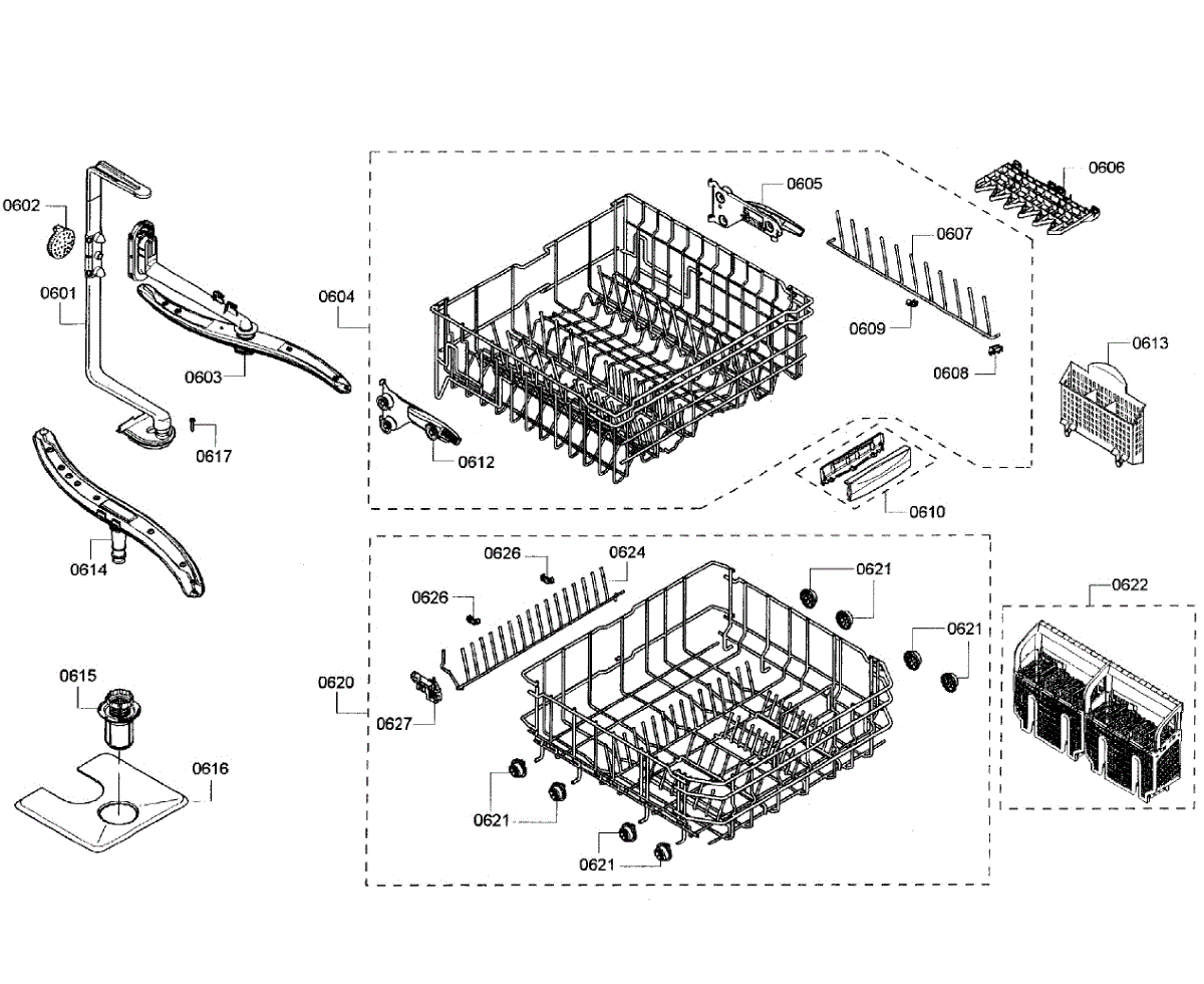 Replacement cutlery basket for your dishwasher. Holds silverware and utensils during wash cycles. Order a new basket if yours is cracked or missing.