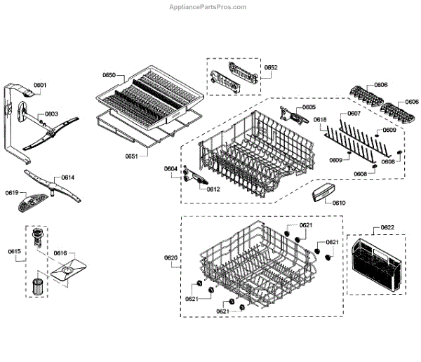 Parts for Bosch SHX65T55UC/01: Baskets Parts