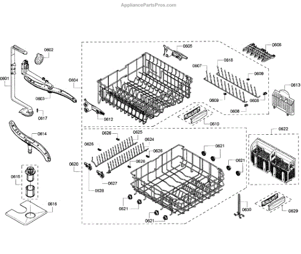 Causes of a bad assembly include cracked or broken rack modules from years of abusive slamming during loading. Mineral buildup may also lead to jammed or stuck tines no longer gliding freely between positions.