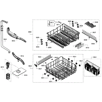 The Upper Dishrack Assembly is an OEM replacement part for Bosch dishwashers. Causes of a bad assembly include cracked or broken rack modules from years of abusive slamming during loading. Mineral buildup may also lead to jammed or stuck tines no longer gliding freely between positions. Symptoms of a bad Upper Dishrack include: