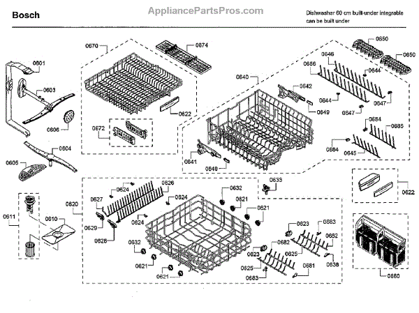 The Insert is an OEM replacement part for Bosch dishwashers. This flexible plastic insert sits inside the lower dish rack to provide optimal placement and support for dishes and cookware during wash cycles.
