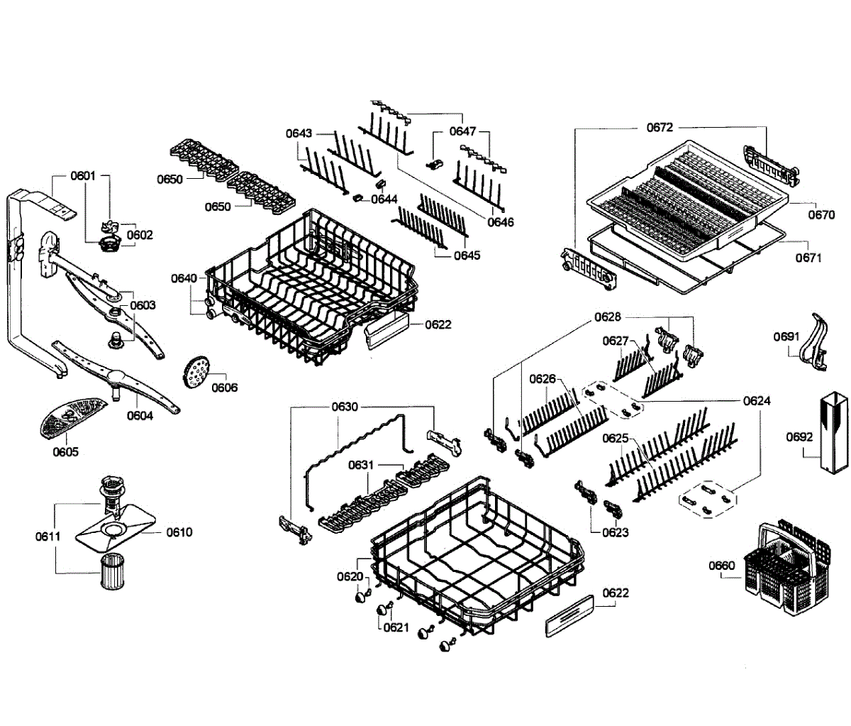 Parts for Bosch SPE5ES55UC/06: Baskets Parts