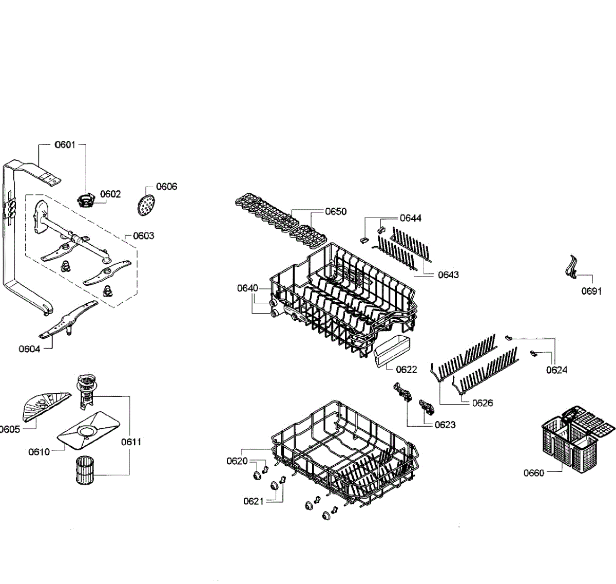 Parts for Bosch SPE5ES55UC/20: Baskets Parts