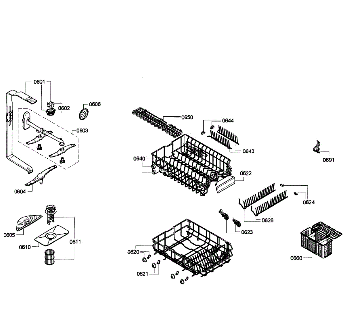 Parts for Bosch SPX5ES55UC/01: Baskets Parts