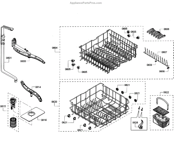 Causes of a bad silverware basket can include damage from normal wear and tear over time or bending/warping from overload.