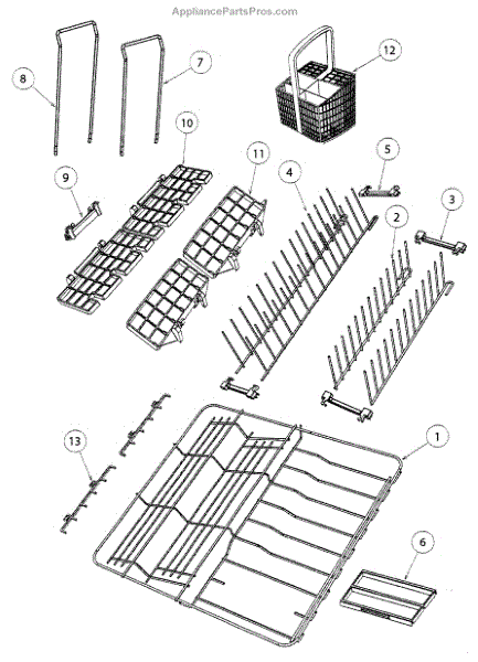 This cutlery basket kit (also called a silverware basket) organizes and separates utensils in your dishwasher for thorough cleaning. It replaces a damaged or missing basket and includes insert grids to help prevent nesting and small items shifting around. What it does:
