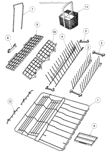This cutlery basket kit (also called a silverware basket) organizes and separates utensils in your dishwasher for thorough cleaning. It replaces a damaged or missing basket and includes insert grids to help prevent nesting and small items shifting around. What it does: