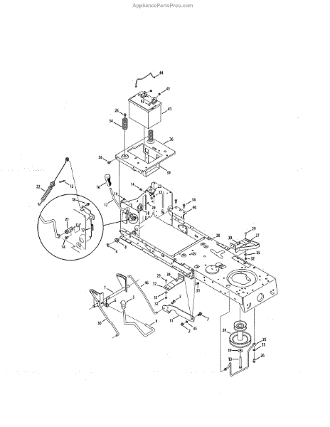 This lawn mower battery brace is compatible with Craftsman, MTD, Kmart, Troy-Bilt, and Yard-Man brands. The battery brace holds the battery in place creating a sturdy surface for the battery terminal to connect to the mower. Without a battery brace, the battery would be able to b around creating an unstable environment for the battery terminal connections, and could cause worse things like a battery leak or a fire. The more vibration the battery is exposed to the shorter its life will be, and an unsecured battery will void the warranty. If the battery terminals become too corroded, mix 1 cup of water and 1 teaspoon of baking soda until the baking soda is dissolved. Then pour the mixture over the battery terminals to dissolve any corrosion. Batteries are toxic, so when changing a battery out, properly disposing of it is recommended. When installing a new battery, place a small amount of petroleum jelly onto the battery terminals to prevent the battery from developing corrosion. After installing a new battery, make sure to securely mount the battery brace, to ensure the battery has a long life and is secure. This is a genuine OEM part sourced directly from the manufacturer and sold individually.