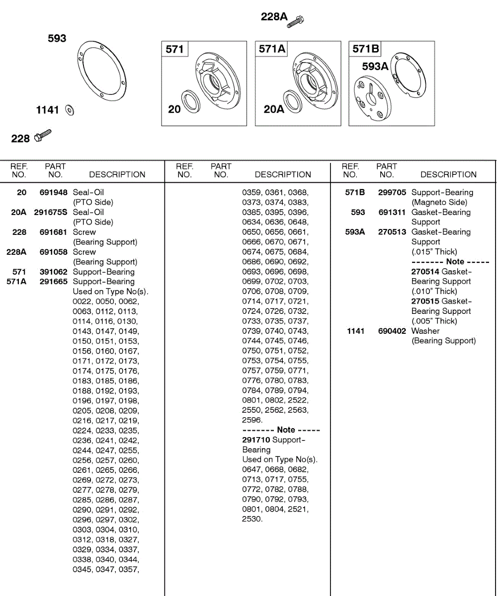 Parts for Briggs & Stratton 326431-0185-99: Bearing Supports, Gaskets Parts