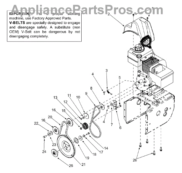 This part is a replacement auger pulley. This is a genuine OEM part made by MTD and has been sourced directly from the manufacturer. This part's intended use is to replace a broken or defective auger pulley in snow blowers.The auger pulley rotates the snow blower's auger blades by connecting the auger gearbox to the equipment's drive belt. This part is critical for proper functionality and thus will require replacement if faulty. When working on or near an engine, it's important to make sure the equipment is powered off and completely cooled down before starting any repairs. For more accurate information on how and where to install this auger pulley, reference the appropriate owner's manual and specific equipment diagrams.This is an authentic OEM replacement part made of high-quality materials. This auger pulley can be used with different models of snow blowers that have been manufactured by MTD, Craftsman, Ryobi, and other brands. Part sold individually.