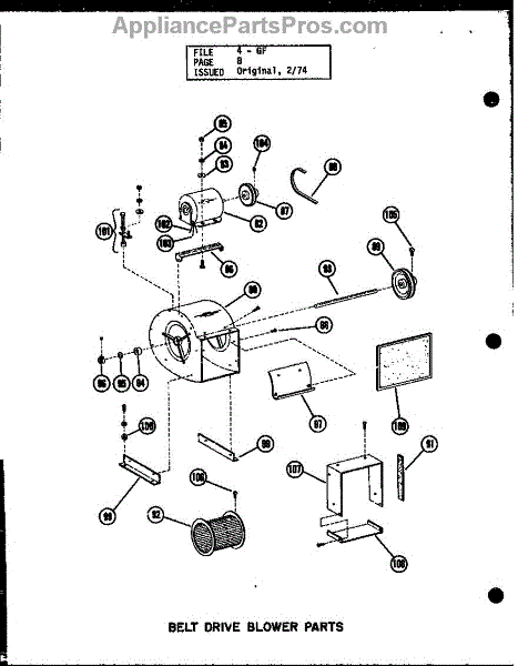 Parts for Amana GL-106E/P96328-7F: Belt Drive Blower Parts (Gl-105E / P96328-1F) (Gl-120E / P96328-3F) (Gl-140E / P96328-5F) (Gl-160E / P96328-7F) Parts