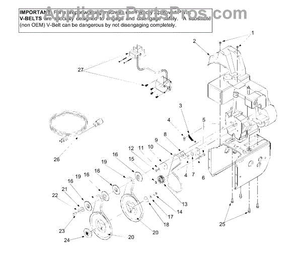 This v-belt is a genuine MTD part, sold individually. This v-belt can be used as a replacement part for a snowblower. The purpose of a v-belt is to facilitate the rotation of the auger and the wheels so the snowblower can move over surfaces and blow snow out of the way of the operator and off of surfaces.The v-belt might have to be replaced in the event that it suffers damage to the point that it can no longer facilitate the rotation of the augur or of the wheels. If the v-belt has been compromised from a puncture, tear, rip, scrape, or sufficient erosion rendering it beyond functionality, the component should be removed and replaced by this genuine OEM replacement part before using the snowblower again. Remember to always wear gloves when handling, repairing, and operating outdoor equipment.This is an OEM part sourced directly from the manufacturer. It is sold individually. This v-belt is compatible with the following outdoor appliance brands: MTD, Craftsman, Ryobi, Troy-Bilt, Yard Machines, Huskee, Montgomery Wards, Bolens, and Yard Man.