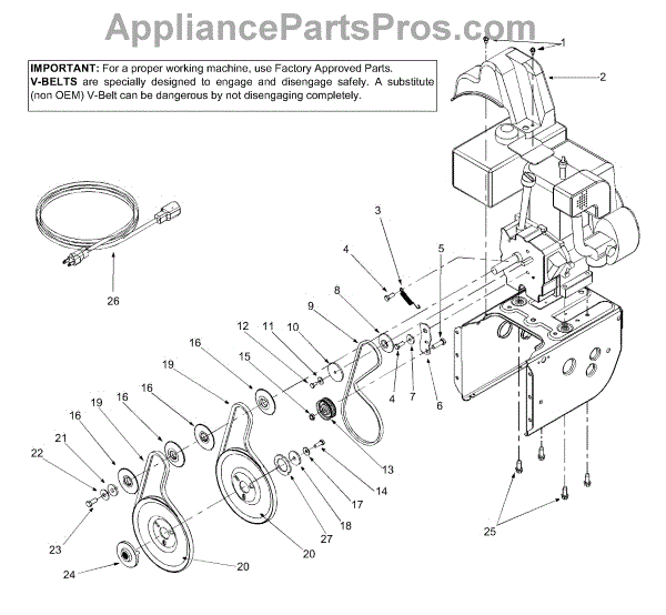 This part is a replacement auger pulley. This is a genuine OEM part made by MTD and has been sourced directly from the manufacturer. This part's intended use is to replace a broken or defective auger pulley in snow blowers.The auger pulley rotates the snow blower's auger blades by connecting the auger gearbox to the equipment's drive belt. This part is critical for proper functionality and thus will require replacement if faulty. When working on or near an engine, it's important to make sure the equipment is powered off and completely cooled down before starting any repairs. For more accurate information on how and where to install this auger pulley, reference the appropriate owner's manual and specific equipment diagrams.This is an authentic OEM replacement part made of high-quality materials. This auger pulley can be used with different models of snow blowers that have been manufactured by MTD, Craftsman, Ryobi, and other brands. Part sold individually.