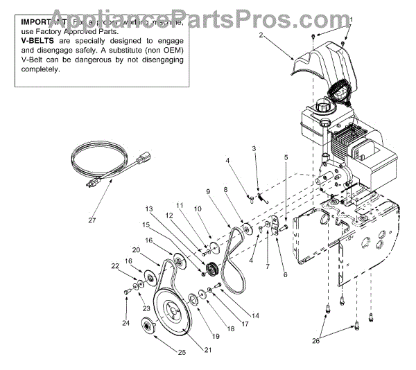 Parts for Yard Machines 31A-611D000 / 2003: Belts & Engine Accessories Parts