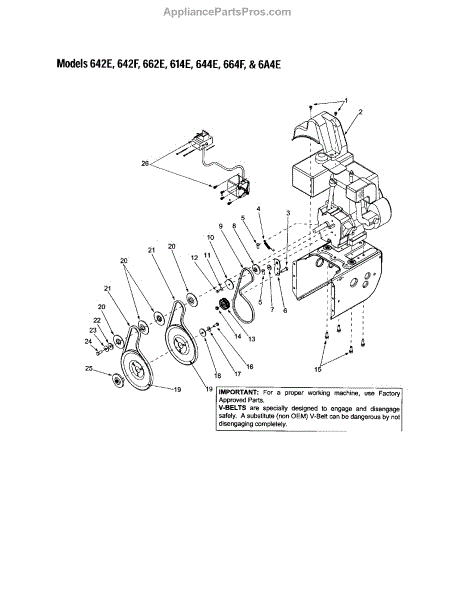 This v-belt is a genuine MTD part, sold individually. This v-belt can be used as a replacement part for a snowblower. The purpose of a v-belt is to facilitate the rotation of the auger and the wheels so the snowblower can move over surfaces and blow snow out of the way of the operator and off of surfaces.The v-belt might have to be replaced in the event that it suffers damage to the point that it can no longer facilitate the rotation of the augur or of the wheels. If the v-belt has been compromised from a puncture, tear, rip, scrape, or sufficient erosion rendering it beyond functionality, the component should be removed and replaced by this genuine OEM replacement part before using the snowblower again. Remember to always wear gloves when handling, repairing, and operating outdoor equipment.This is an OEM part sourced directly from the manufacturer. It is sold individually. This v-belt is compatible with the following outdoor appliance brands: MTD, Craftsman, Ryobi, Troy-Bilt, Yard Machines, Huskee, Montgomery Wards, Bolens, and Yard Man.