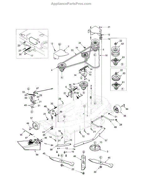 This replacement part is a deck pulley. In a mower, it provides tension for and guides a belt which allows the mower's blades to spin.If the mower's blades are not spinning, if the deck is vibrating excessively, or if cuts are uneven, the deck pulley may be at fault. Aside from damage from impact, the pulley can become worn down over time with extended use.This is a genuine OEM replacement part manufactured by MTD. This part is sold individually.