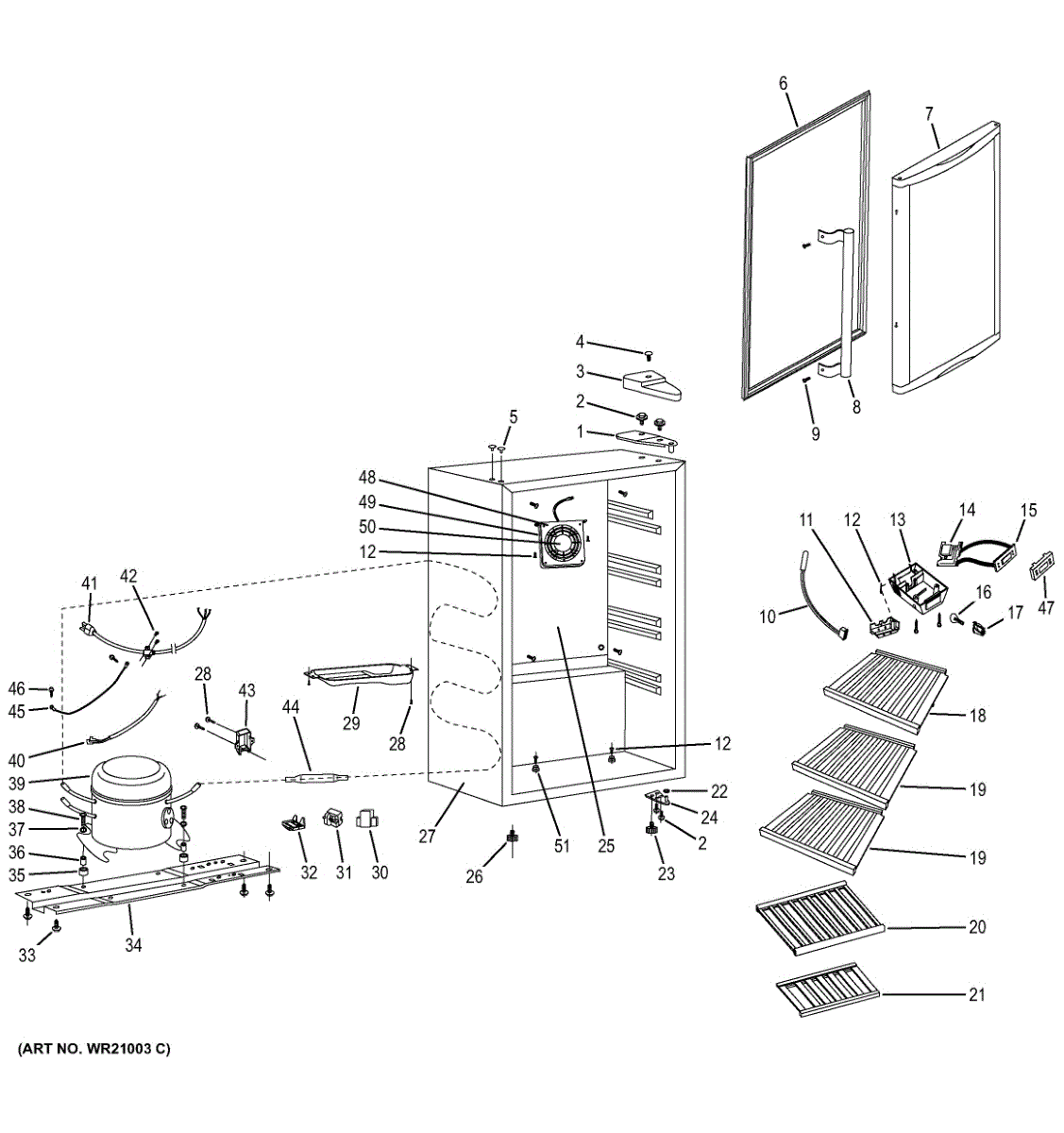 Replace your refrigerator's damaged or broken door. This complete door assembly installs on the front of the unit. Needed when the original is cracked or worn.