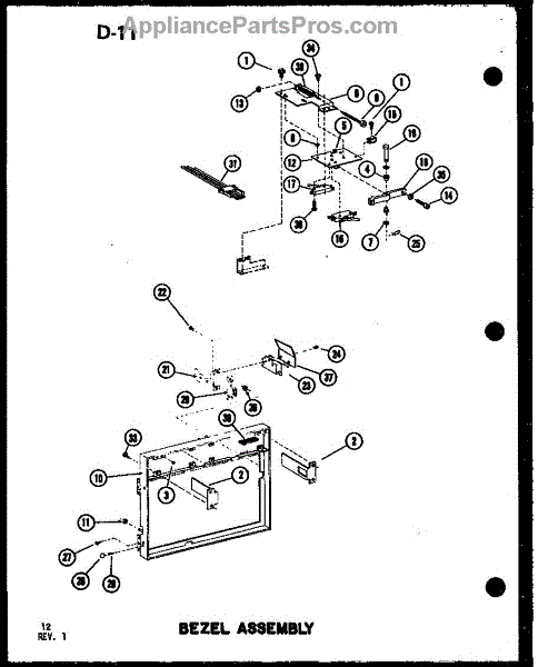Parts for Amana RC-14S/P73824-4M: Bezel Assembly Parts