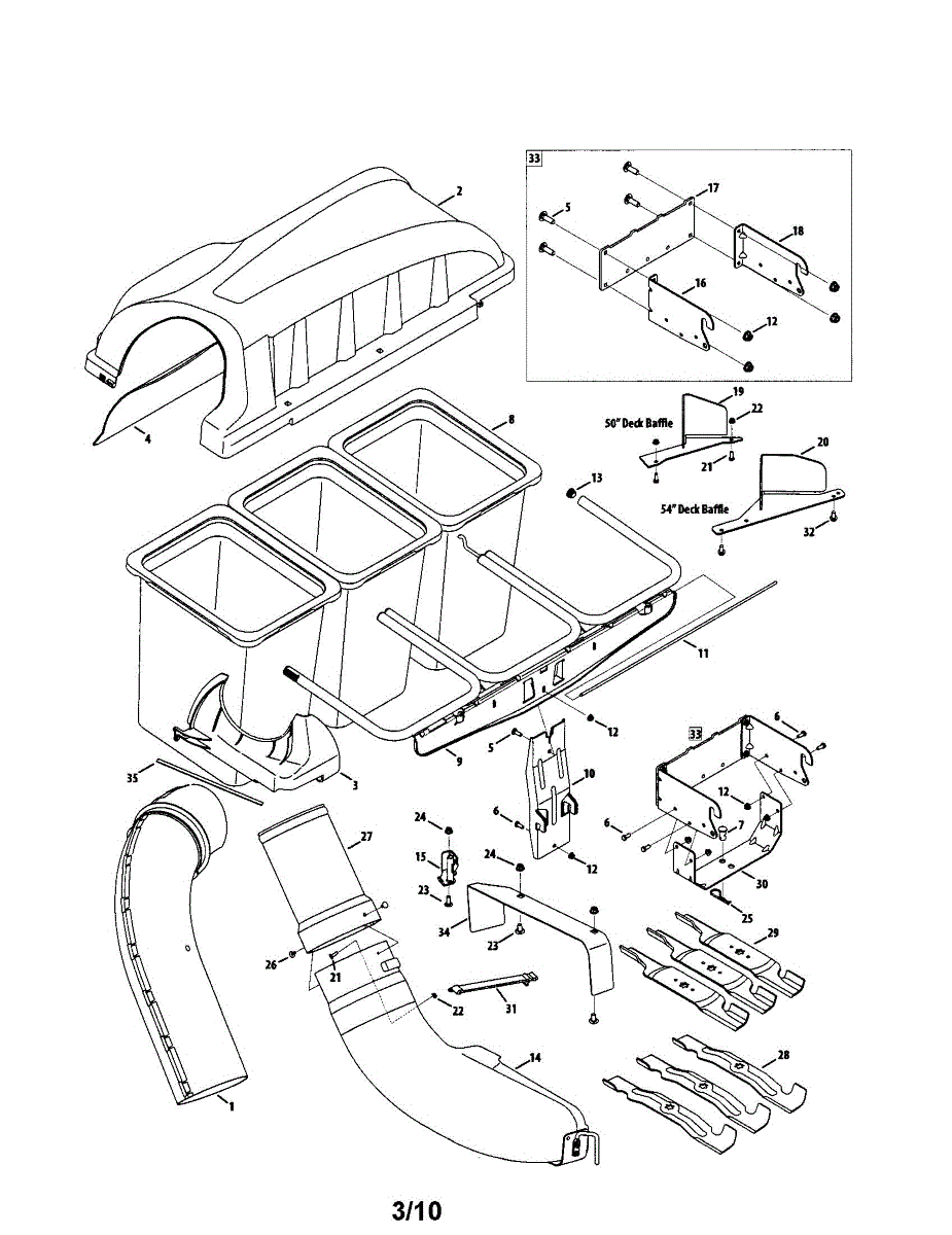 Replacement cover for lawn tractor triple bagger attachment. Installs on top of bagger assembly. Needed when original is cracked, damaged, or missing.