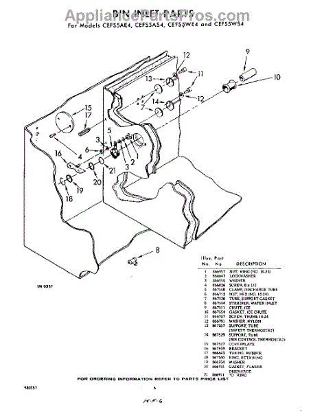 Parts for Whirlpool CEFS5WE4: 06 - Bin Inlet Parts